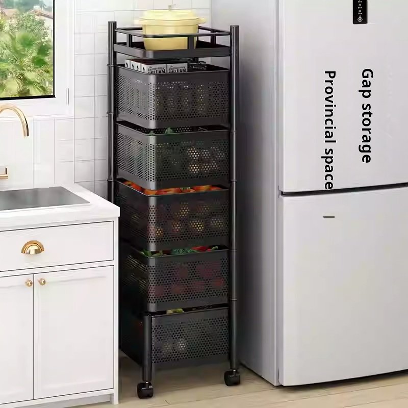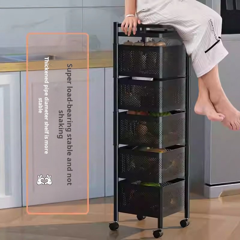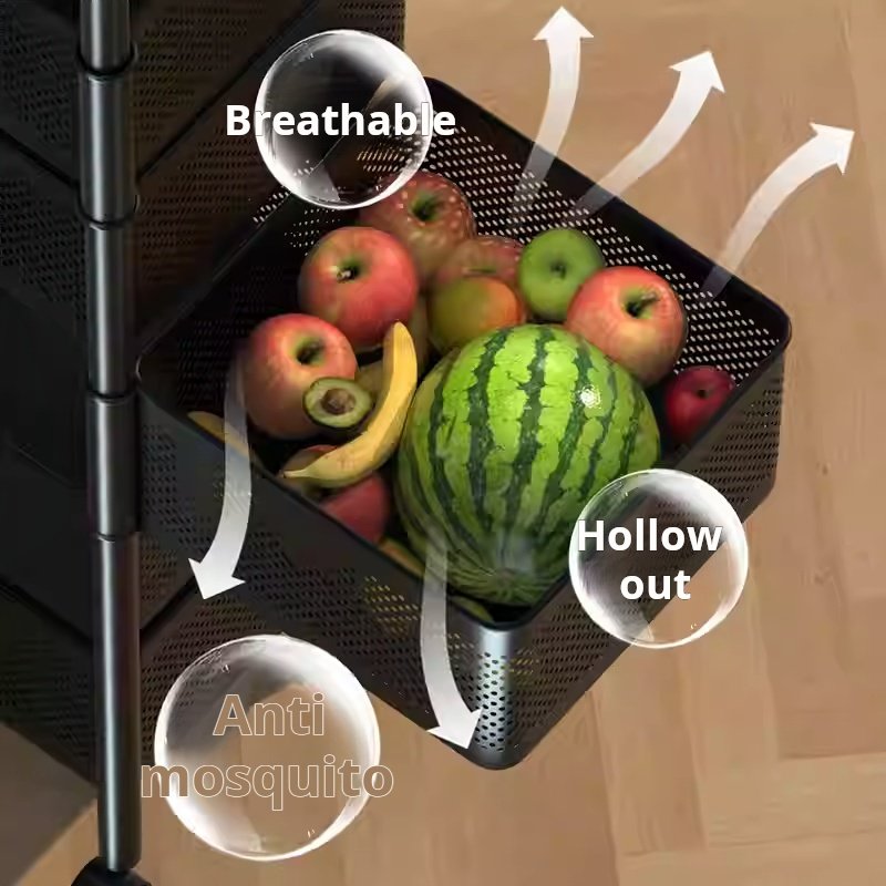 Kitchen rotating storage rack, home-use floor-standing multi-layer snack box, living room fruit and vegetable basket, small trolley storage rack, mobile